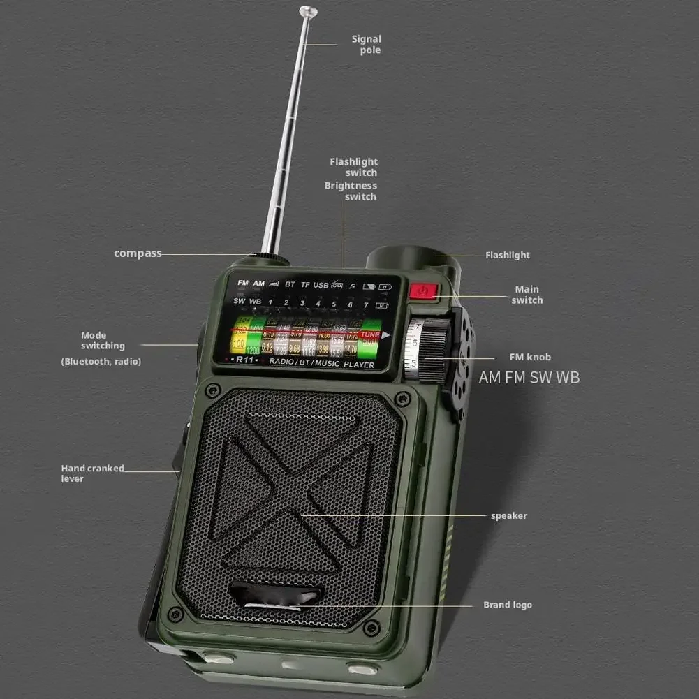 Hand-operated Emergency Solar Bluetooth Outdoor Camping Alarm Radio Multi-band Earthquake Prevention Solar Radio